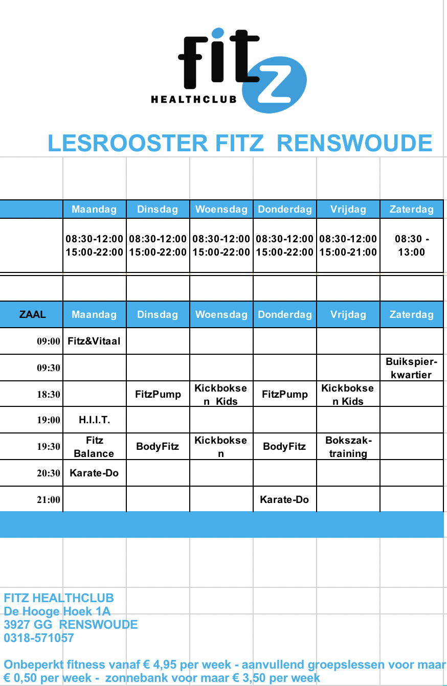 Bij Fitz Healthclub fitness je vanaf €4,95 per week inclusief begeleiding! Klik hier |